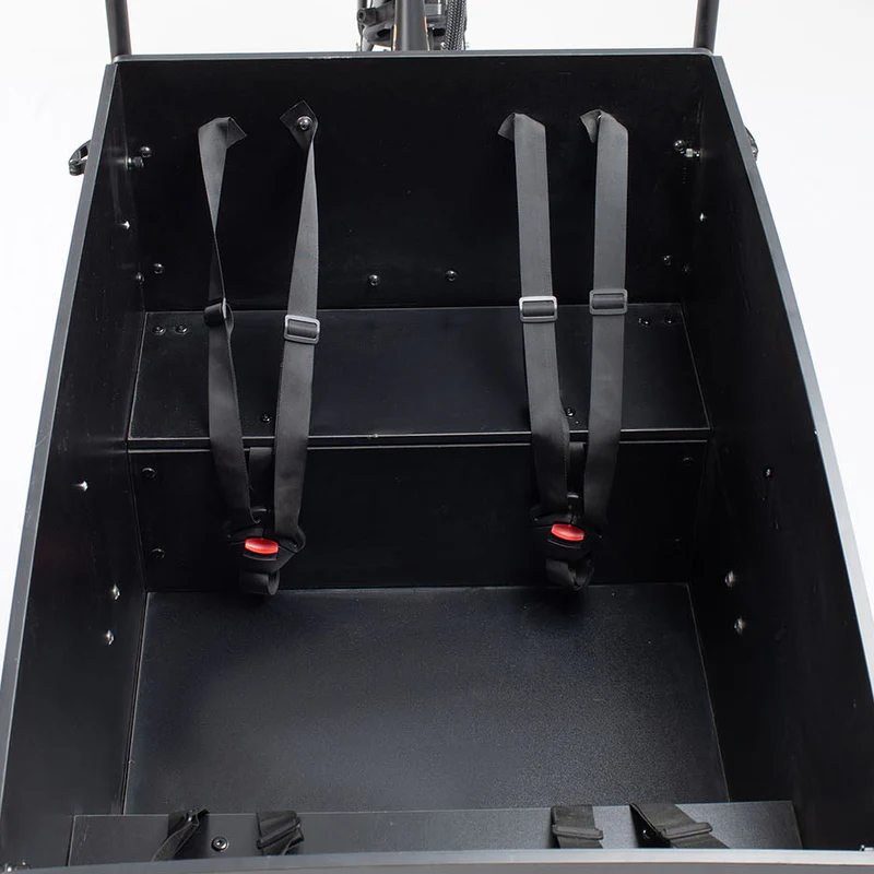 Aitour Starter har en rummelig ladkasse med plads til op til 4 børn eller 2 voksne, hvilket gør den til en af de mest fleksible og familievenlige ladcykler på markedet. Frontdøren giver nem ind- og udstigning, og der kan tilkøbes en regnkaleche, så børnene sidder tørt og behageligt i al slags vejr.