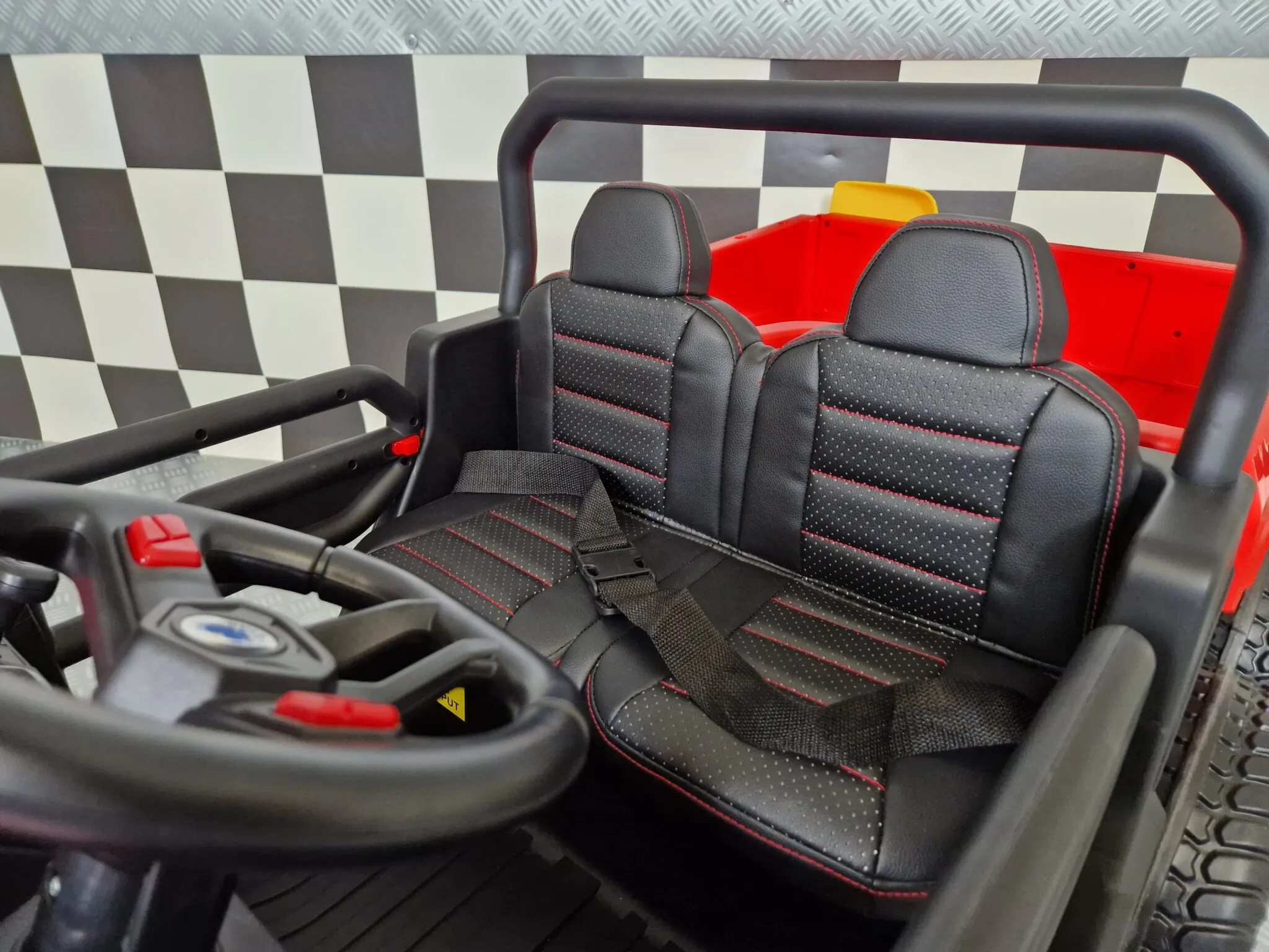 Denne 24 V elektriske børne‑jeep Transporter i rød er en kraftfuld og sjov elektrisk jeep til børn fra ca. 3 år, designet til leg både ude og inde. Den er udstyret med et stærkt 24 V 7 Ah batteri og to 200 W motorer, som giver en maksimal hastighed på ca. 3–8 km/t og en stabil kørsel. Jeepens fjernbetjening med 2.4G og soft‑start gør det let for forældre at styre bilen sikkert, samtidig med at barnet kan få glæde af at køre selv. Bilen har arbejdende lys, lyd og musikfunktioner, herunder MP3-, USB‑ og Bluetooth‑tilslutning, så køreturen bliver ekstra underholdende. Komforten er i top med læderlignende sæde, sele og affjedring, og de robuste EVA‑dæk sikrer godt vejgreb på forskellige overflader. Transporteren har plads til ca. 1,5 personer – altså to mindre børn eller én lidt ældre barn – med en maksimal belastning på 50 kg, alt sammen pakket ind i et sporty og sejt design, der indbyder til eventyr og leg.