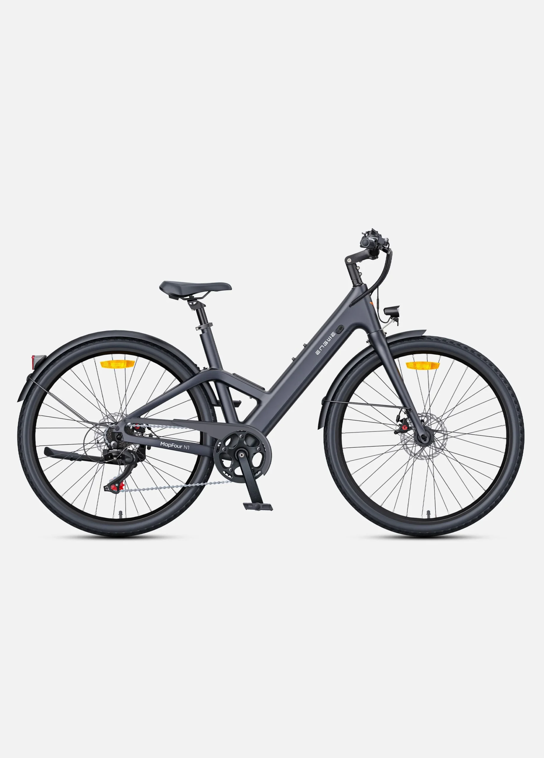 Designet på Engwe N1 Air er både elegant og funktionelt. Cyklen kombinerer moderne æstetik med praktiske løsninger, hvilket giver dig en cykel, der ser godt ud, samtidig med at den er meget brugervenlig. Den slanke ramme og de diskrete kabler bidrager til et stilrent udseende, mens farvevalg og finish giver et indtryk af kvalitet og opmærksomhed på detaljer.
