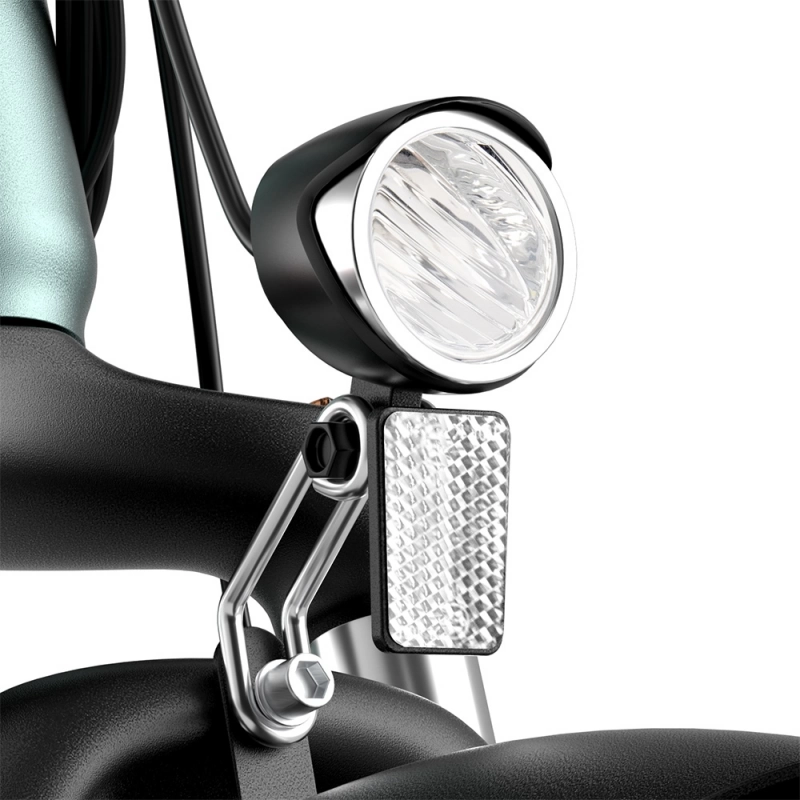 El cyklen er udstyret med en overskuelig 2,6″ LCD-skærm, der viser hastighed, batteriniveau, distance og assistance-niveau. For- og baglygter er StVZO-godkendte og sikrer, at du ses i trafikken, også i mørke.
