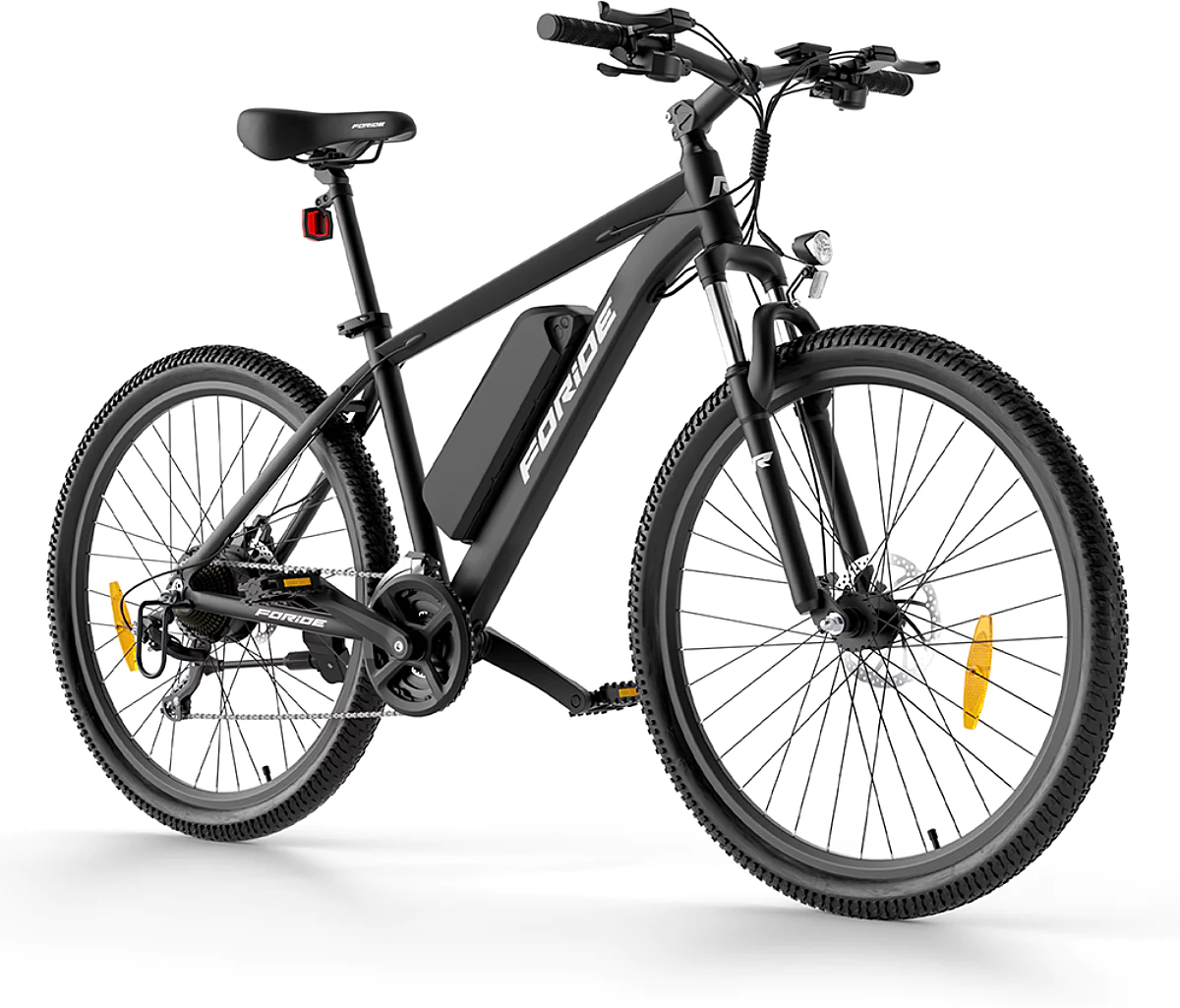 Foride Xtremer 1 elcyklen er designet med fokus på komfort og sikkerhed. Den affjedrede forgaffel absorberer ujævnheder i underlaget, så du får en glidende køreoplevelse, selv på ujævne stier. Med de hydrauliske skivebremser på Foride Xtremer 1 er du sikret pålidelig bremsekraft i al slags vejr. Kombinationen af enten 27.5″ eller 29″ hjul og et robust aluminiumsstel gør Foride Xtremer 1 både stabil og nem at manøvrere, uanset om du kører i byen eller i naturen.