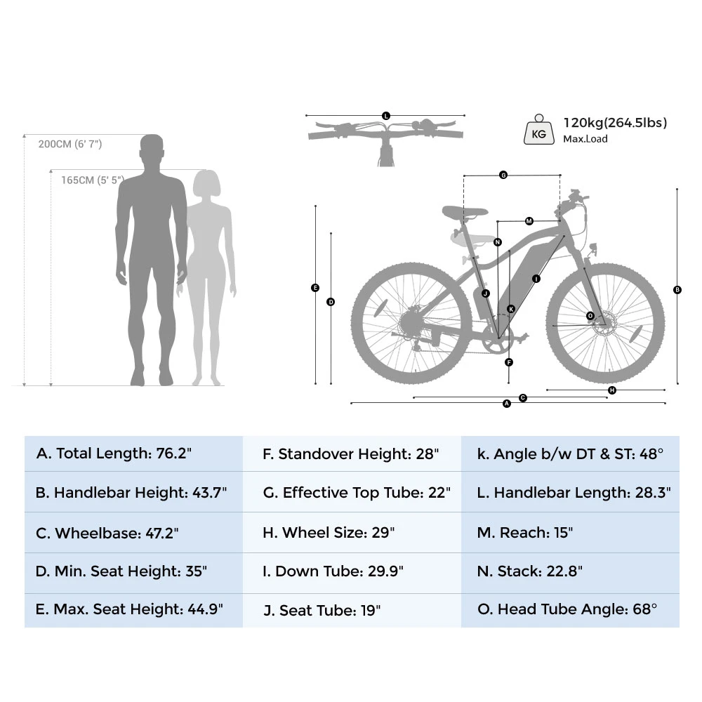 Denne el cykel passer til personer ml. 170 – 195 cm.