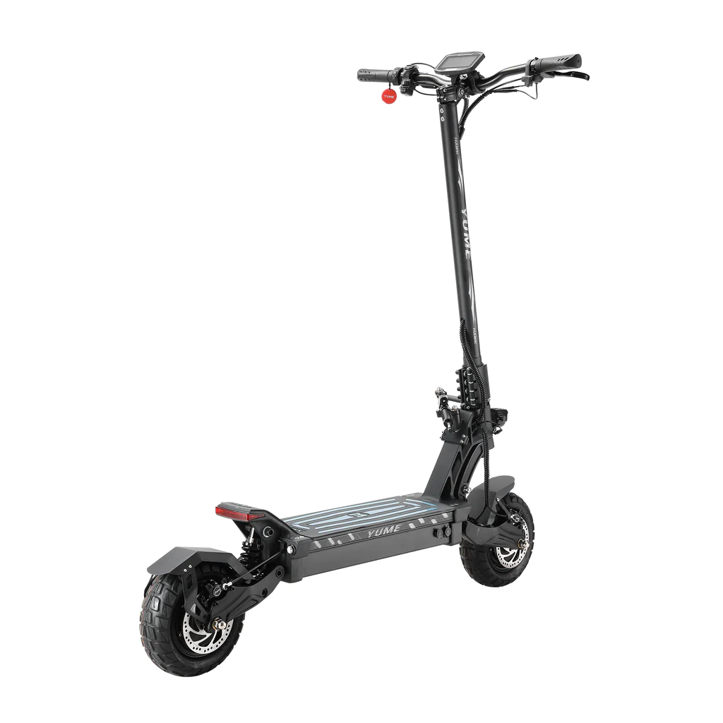 Yume har monteret en kraftig forlygte lavet af aluminiumslegering til at oplyse vejen foran dig. Bremselys og blinklys kommer også som standardmontering. både styrstammen og langs side er der tænkt på din sikkerhed med indbygget LED-belysning, som kan programmeres via fjernbetjeningen, så den passer til din præference eller stil med en række farve- og strobing-konfigurationer.