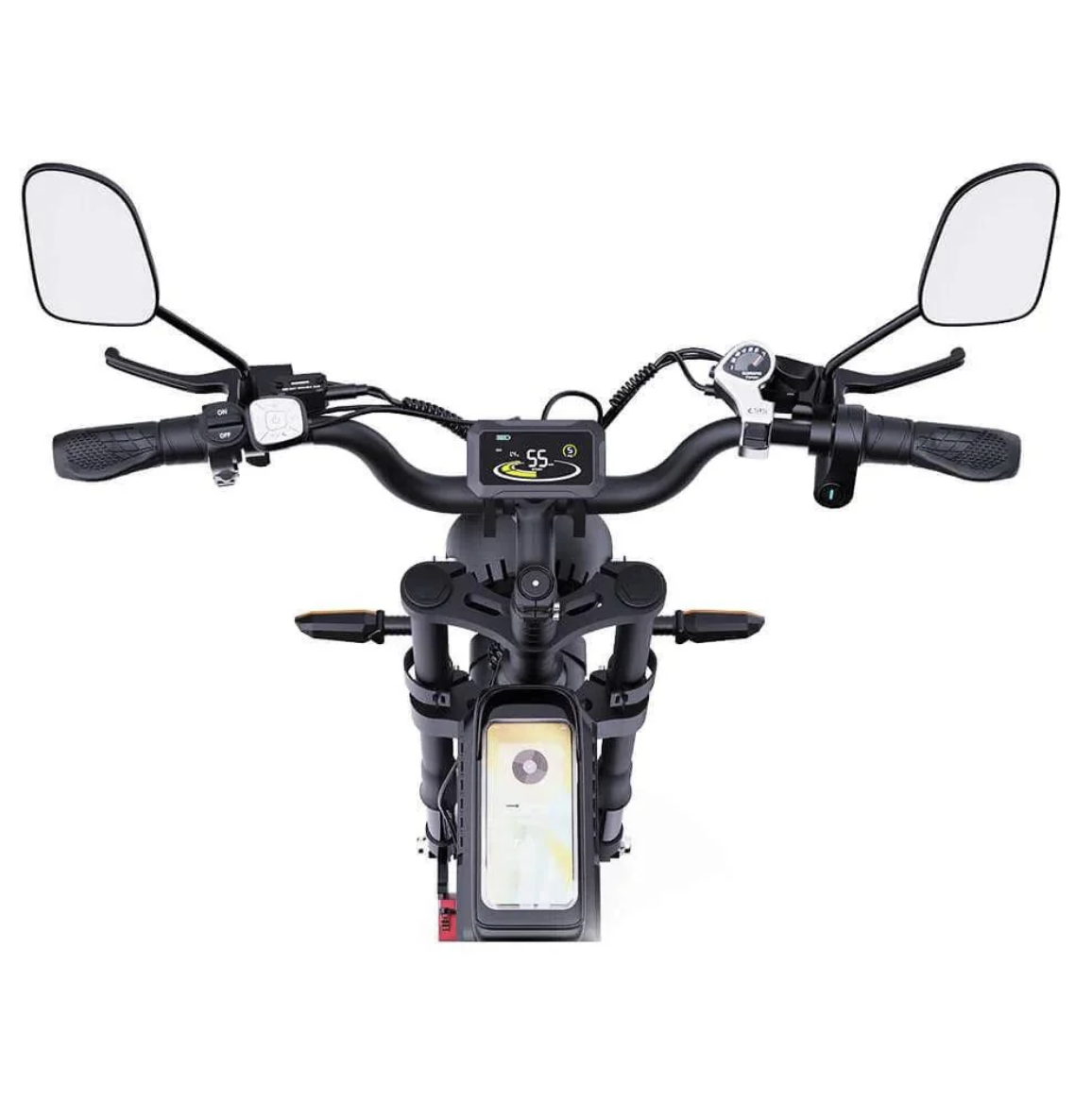 Modellen er udstyret med to kraftige 52V batterier på hver 20Ah. Det giver høj kapacitet og lang rækkevidde, så du kan køre betydeligt længere mellem opladninger. De aftagelige batterier gør opladning fleksibel og nem, uanset om du er hjemme, på arbejde eller på farten.